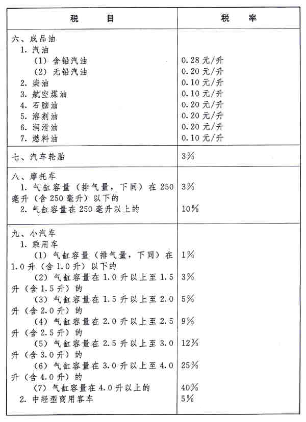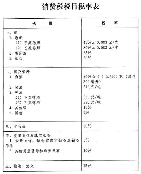 第二条 消费税的税目、税率,依照本条例所附的《消费税税目税率表》执行。